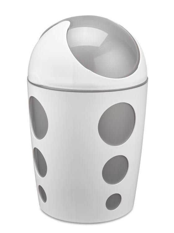 Sallanır kapak yapısı sayesinde el değmeden kullanıma uygun banyo çöp kovası, banyo aksesuarı.